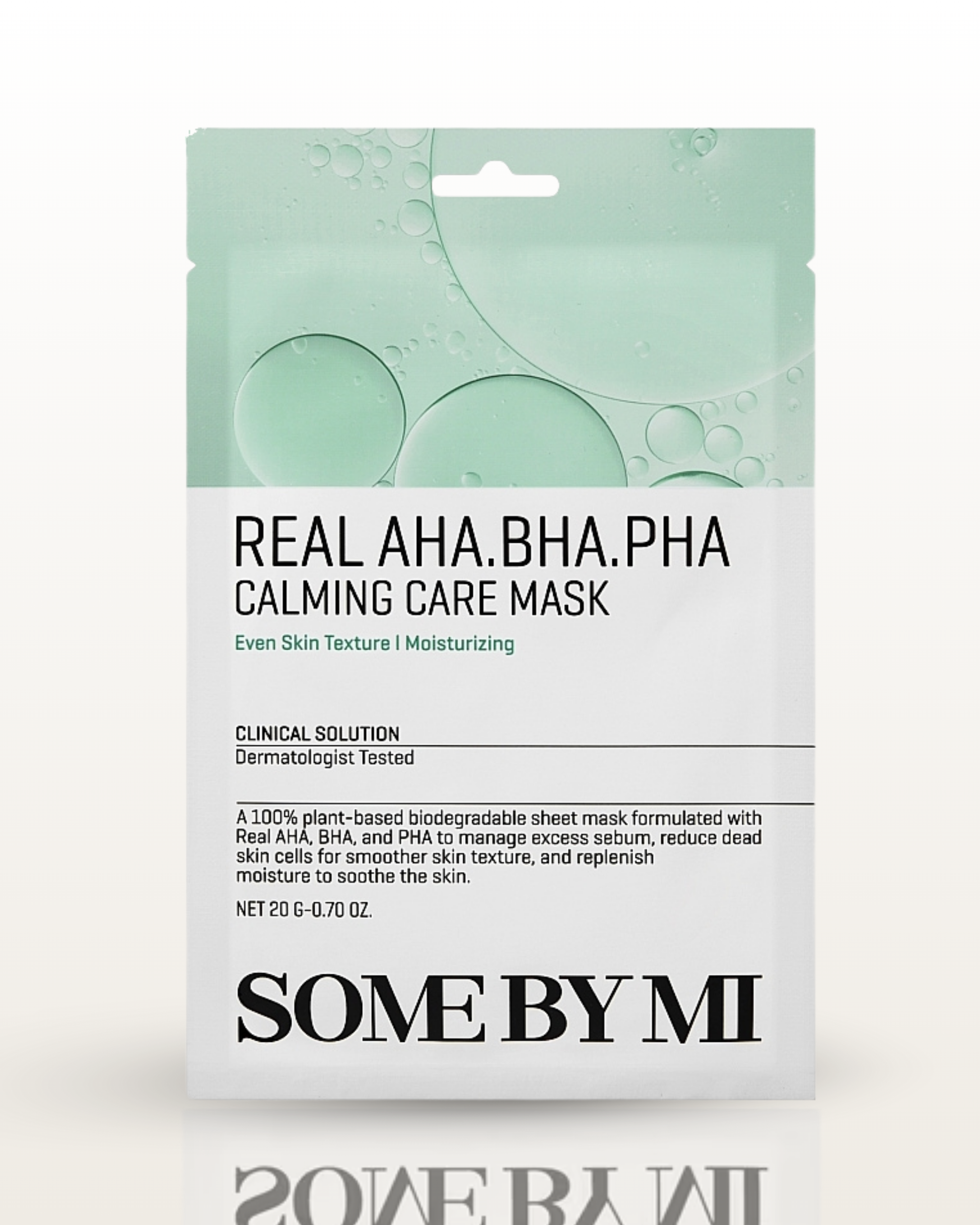 Real Care Mask AHA BHA PHA Calming kombinuje sílu tří kyselin, které společně vyhlazují texturu pleti a pomáhají snižovat nedokonalosti. AHA odstraňují odumřelé buňky z povrchu, BHA pronikají do pórů a čistí je do hloubky a PHA hydratují a poskytují šetrnou exfoliaci bez podráždění.